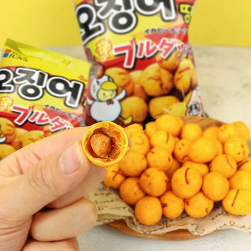 ブルタック味でサクサクのイカ入りボールの中に